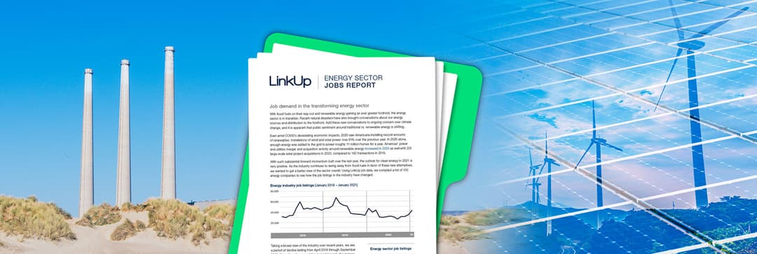 With such substantial forward momentum built over the last year, the outlook for clean energy in 2021 is very positive. As the industry continues to swing away from fossil fuels in favor of these new alternatives, we wanted to get a better view of the sector overall. Using LinkUp job data, we compiled a list of 100 energy companies to see how the job listings in the industry have changed.